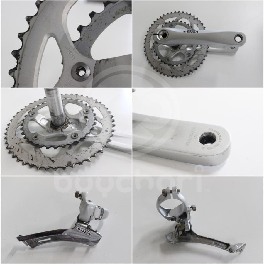| 商品の特徴 | Bianchi(ビアンキ) SHIMANO 「シマノ」 SORA 3400 コンポセット。Bianchi(ビアンキ) SHIMANO 「シマノ」 SORA 3400 コンポセット。Bianchi(ビアンキ) SHIMANO 「シマノ」 SORA 3400 コンポセット。シマノのソラ3400とティアグラ4500のコンポセットです。SHIMANO sora 3400 セット シマノ SORA 3400 TIAGRA 4500 コンポセット。ソラのstiとティアグラのFDRDについては新車時に取り外してからそのままの未使用です。エキセントリックBB。ワイヤーも未使用です。MAXXIS REAVER 700x40C タイヤ 2本セット。スプロケットは使用品ですが程度の良さそうなものをセットにしました。新品未使用TERAVAIL CANNONBALL 700C x 35。ブレーキは社外品で使用感が目立ちます。TNI Peloton カーボンハンドル 42cm プロトン。仕様st-3400 2/3速兼用×9速fd-4500 クランプ径34.9rd-4500 sscs-hg50-9 12-25T未使用品が含まれておりますが、保管時についた小傷がある可能性もありますので人の手に渡ったものをご理解いただける方のみご購入お願いいたします。DTSWISS ARC1100 DICUT 50mm前後。ロードバイク クロスバイク マウンテンバイク ミニベロ TT shimano sora tiagra スプロケ | ||
