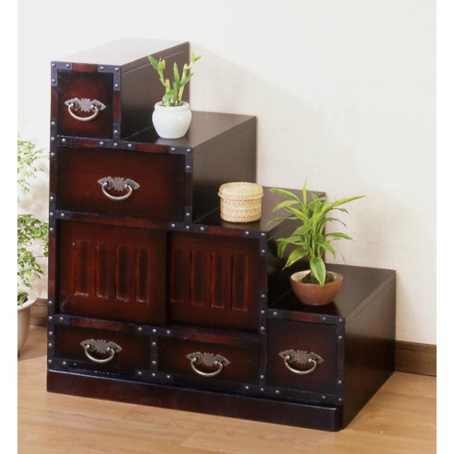 DLK113 民芸家具調 階段箪笥 4段 両面タイプ 階段タンス 抽斗 和モダン DLK113 民芸家具調 階段箪笥 4段 両面タイプ 階段タンス 抽斗 和モダン