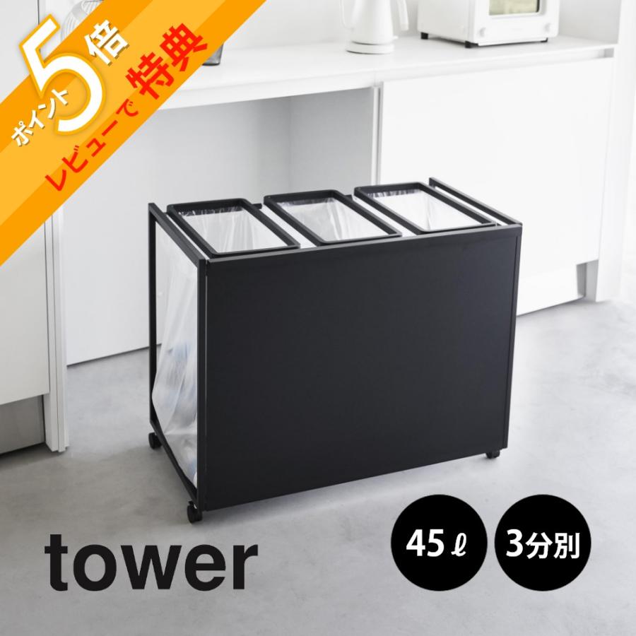 - インテリア小物 > ごみ箱 > 山崎実業タワー 目隠し 分別 ダストワゴン 45L 3分別 ブラック フタなし tower 山崎実業 目隠し分別ダストワゴン タワー 45L 3分別 1826 1827