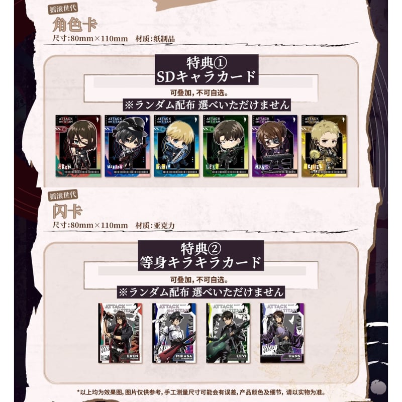 | 商品の特徴 | 注文特典【進撃の巨人 × 次元波板糖】2025年中国限定 コラボカフェ。進撃の巨人 × 次元波板糖】2025年中国限定 コラボカフェ 「摇滚世代。進撃の巨人 in E-DINER TITAN CAFE。⚠︎希望価格設定をされてもお値下げ対応はしておりません。希望価格設定をされてもお値下げ対応はしておりません。早い者勝ちになります。。TVアニメ『進撃の巨人』POP UP SHOP ┃ プリンセスカフェ公式。✩アクリルスタンド 1点✩缶バッジ 3点✩特典カード 1点✩特典アクリルカード 2点神経質な方のご購入は御遠慮くださいませ。R001 プロセカ ミニ色紙コレクション 天馬司 21B 2つセット。KANON アクリルブロック。取り置き対応も不可です。機動戦士ガンダムSEED FREEDOMぬいパル アスラン キラ カガリ ラクス。ちいかわ てんし&あくま あくまのあかちゃんマスコット(うさぎ)。お値下げ× 即購入〇バラ売り×#Johnnypop進撃の巨人↑タップすると出品している進撃の巨人グッズ一覧が表示されます。大幅値下げ すとぷり ころん ころんくん サイン入り セット まとめ売り | ||