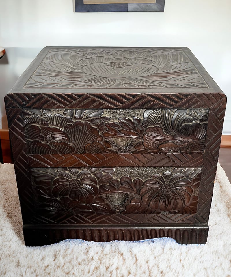 【希少】 堆朱 漆器 手彫り 引き出し 小箪笥 木製 小物入れ 伝統工芸品 松 希少】 堆朱 漆器 手彫り 引き出し 小箪笥 木製 小物入れ 伝統工芸品